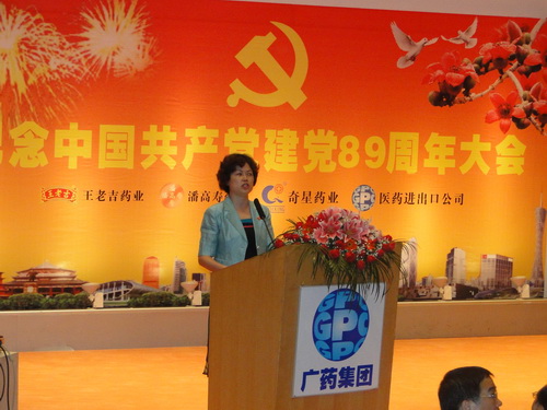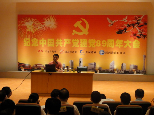 大會首先由廣藥集團紀委書記、廣州藥業黨委書記楊秀微作紀念中國共產黨建黨89周年暨黨員紀律教育月活動動員講話。楊秀微書記在講話中回顧了我黨89年所走過的光輝歷程,勉勵在座的黨員,在迎接我們黨自己的光輝節日到來的時刻,更要牢記當代中國共產黨人所肩負的歷史責任,準確把握我們所處的歷史方位,清醒認識我們面臨的形勢和任務,在新的歷史條件下保持和進一步提高企業黨組織的政治地位,充分發揮黨組織領導經濟建設發展的堅強核心作用,緊緊圍繞廣藥集團的“百億工程”整體目標,認真抓好各項工作,克服困難,把握醫藥行業大發展的機遇期,繼續保持企業又好又快發展的良好態勢。楊書記在講話中還對企業如何認真抓好今年的黨員紀律教育學習月活動,加強企業的廉政建設,反腐倡廉工作進行了動員,提出了要求。