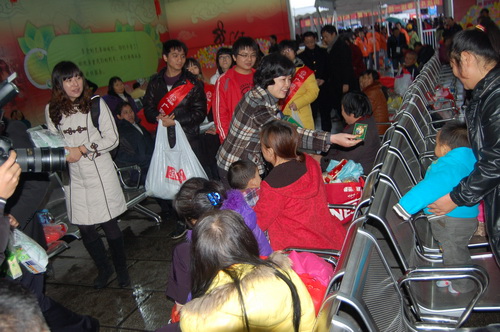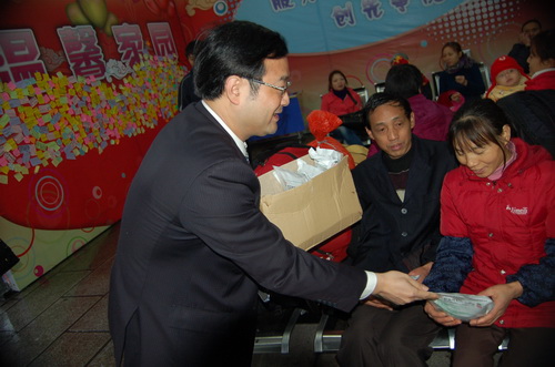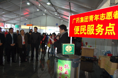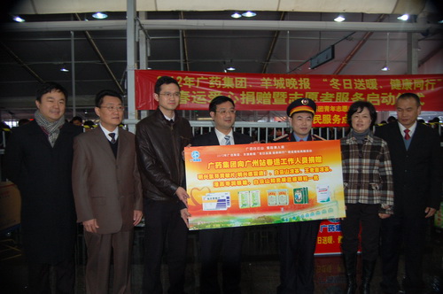 為了配合做好2012年春運工作,《羊城晚報》與廣藥集團共同在廣州火車站啟動了春運現場志愿者服務活動。元月15日上午,《羊城晚報》總編輯劉海陵等領導和白云山和黃中藥、潘高壽、王老吉、明興等企業領導等一行來到廣州火車站,針對車站工作人員在春運期間喊話多、休息少等狀況特別挑選了價值逾10萬元白云山板藍根、白云山涼茶、潘高壽潤喉糖、王老吉涼茶、清開靈膠囊等廣藥集團司屬產品。這些急需藥品、飲料,受到車站領導和工作人員的熱烈歡迎。 我司黨委書記鄭楠率領潘高壽手牽手義工隊人員到現場參加活動,為有需要的旅客送去關懷和溫暖,潘高壽潤喉糖特別受到了人們的歡迎。 從15日—22日,廣藥集團每天將派出志愿者在車站廣場開展志愿服務,為有需要的旅客提供熱飲及其他協助。參加本次志愿行動的志愿者將達到100人。 資訊部 良戈 (戴梅、林沃亮 圖/文)